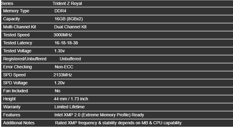 G.SKILL Trident Z Royal RGB 16GB DDR4 Bus 3000 Cas 16 – GOLD Published 14/07/2019 at 759 × 416 in G.SKILL Trident Z Royal RGB 16GB DDR4 Bus 3000 Cas 16 – GOLD Capture Capture ← Previous Next →