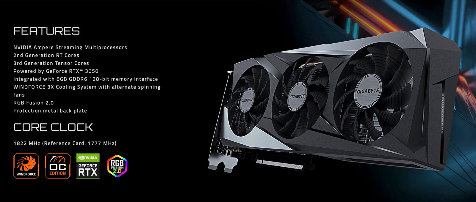 Gigabyte GeForce RTX™ 3050 GAMING OC 8G – 8GB GDDR6
