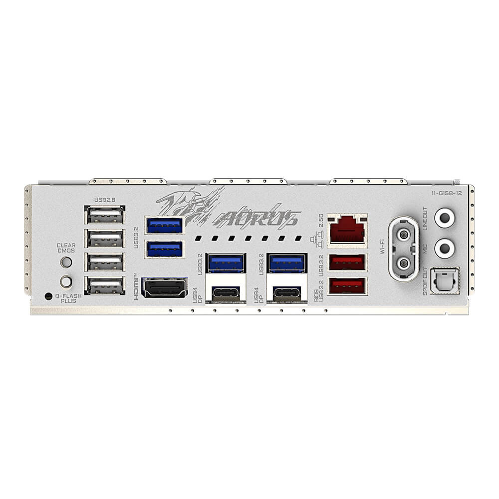 Back Panel Connectors | 1 x Clear CMOS button 1 x Q-Flash Plus button 1 x HDMI port* 4 x USB 2.0/1.1 ports 4 x USB 3.2 Gen 1 ports 2 x USB 3.2 Gen 2 Type-A ports (red) 2 x USB4® USB Type-C® ports (DisplayPort*) 1 x RJ-45 port 2 x antenna connectors (2T2R) 2 x audio jacks 1 x optical S/PDIF Out connector* Actual support may vary by CPU. |